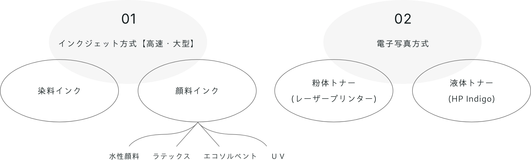 デジタル印刷のインキ別分類